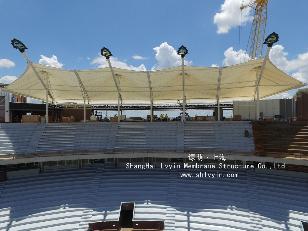 ●ETFE 膜材表面非常光滑,具有極佳的自潔性能。在用ETFE 膜材建造的膜結(jié)構(gòu)上,灰塵及污跡會隨雨水沖刷而除去。外表的人工清洗一般四年才一次。