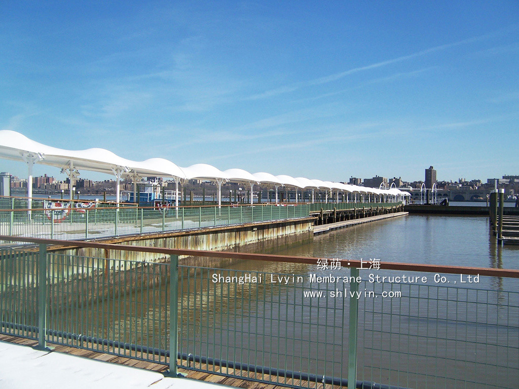 3. 永久性性膜材,使用年限30年以上。對(duì)太陽(yáng)能的反射率高,所以熱吸收量很少。即使在夏季炎熱的日光的照射下室內(nèi)也不會(huì)受太大影響。正是因?yàn)檫@種劃時(shí)代性的膜材料的發(fā)明,才使膜結(jié)構(gòu)建筑從人們想象中的帳篷或臨時(shí)性建筑發(fā)展成現(xiàn)代化的永久性建筑。